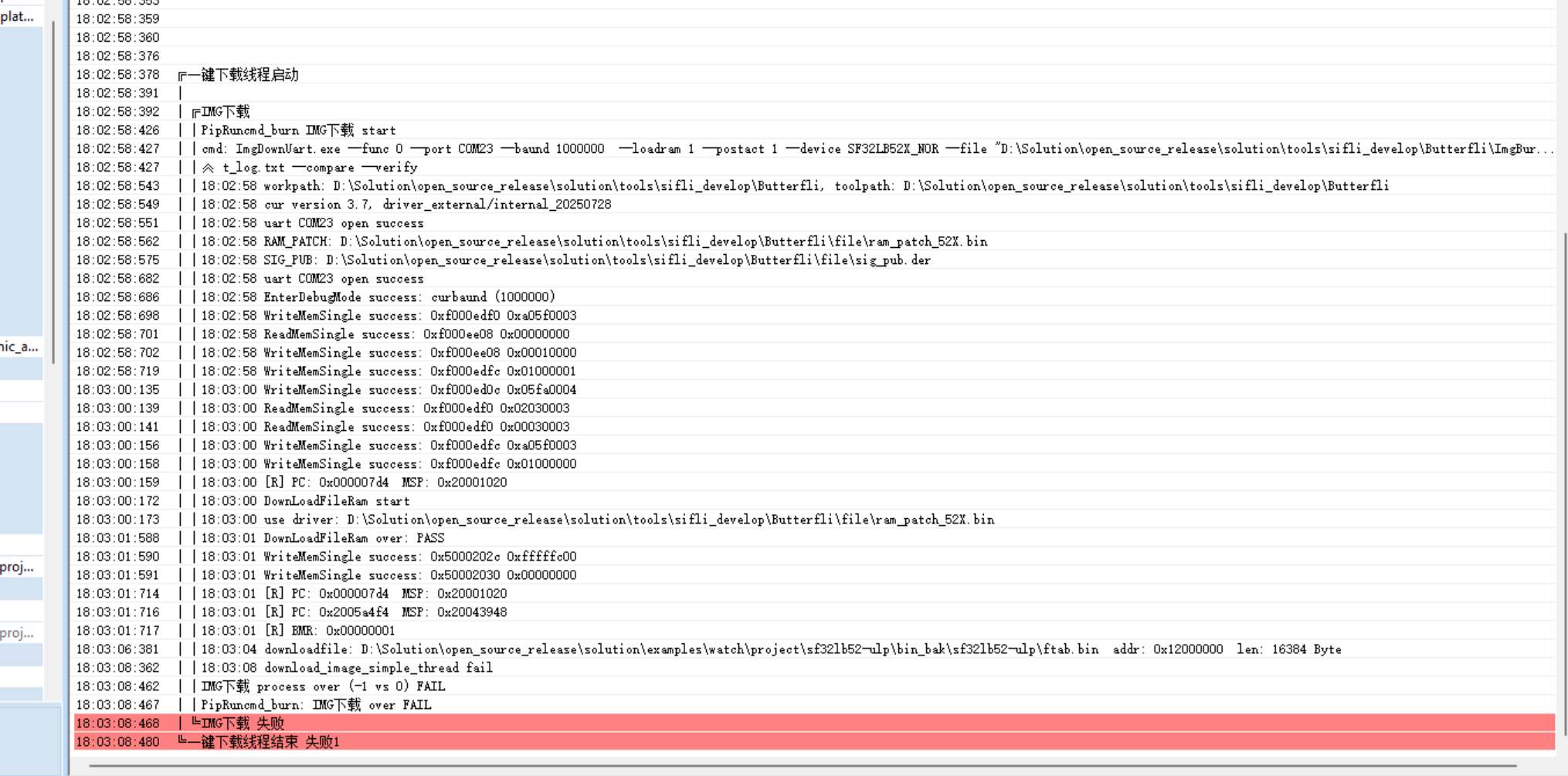 This phenomenon seems quite abnormal, as if the serial port dropped after being opened and got stuck due to the driver. Normally, the flashing process should return whether it succeeds or fails, rather than getting stuck here. If this issue persists, try unplugging the serial port—does the software exit the download process?