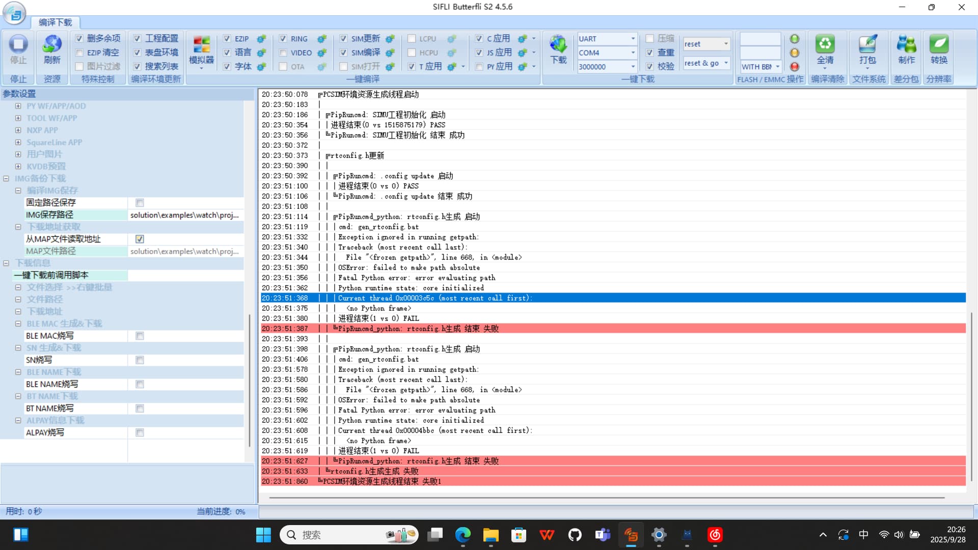 The root cause of this issue is that there might be a problem with the kconfig files, causing menuconfig to fail generating the corresponding rtconfig.h file from the configuration. You can right-click in the simulator directory → ConEmu Here → enter the command “menuconfig” in the command line, and follow the prompts to identify which specific kconfig file is abnormal. Then manually correct it according to the error message.