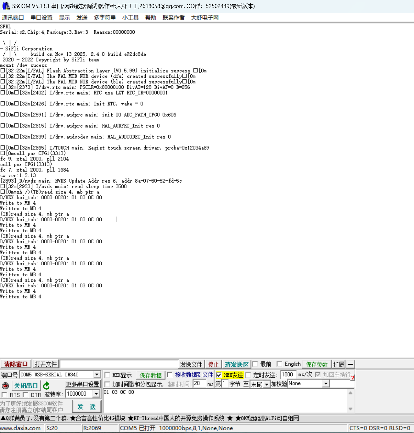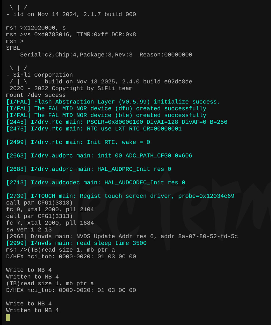 使用 sifli-sdk/example/bt/HCI_over_uart 下载后开发板无法正常启动,具体原因没查看