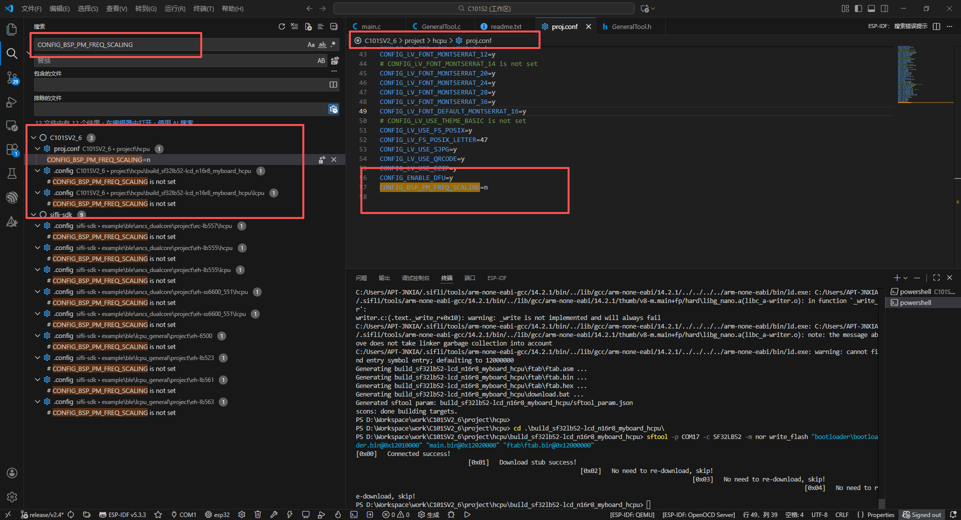 看build_sf32lb_52xxxxx目录下.config或rtconfigh文件, 里面没有BSP_PM_FREQ_SCALING就是没打开变频。 如果确认没打开变频还有,就是看cpu usage, 如果没有谁占用cpu比较高