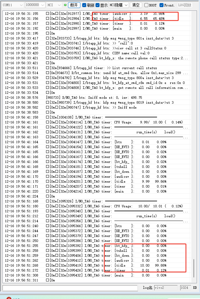 在hfp初始化后,没有使用远程通话之前,lvgl刷新还算流畅。