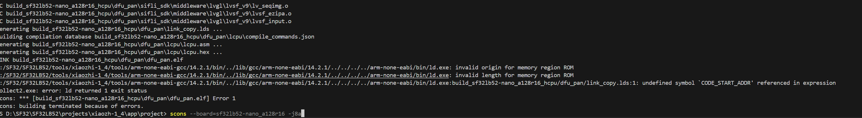 SF32LB52-Nano-A128R16 development board fails to compile Xiao Zhi 1.4 version