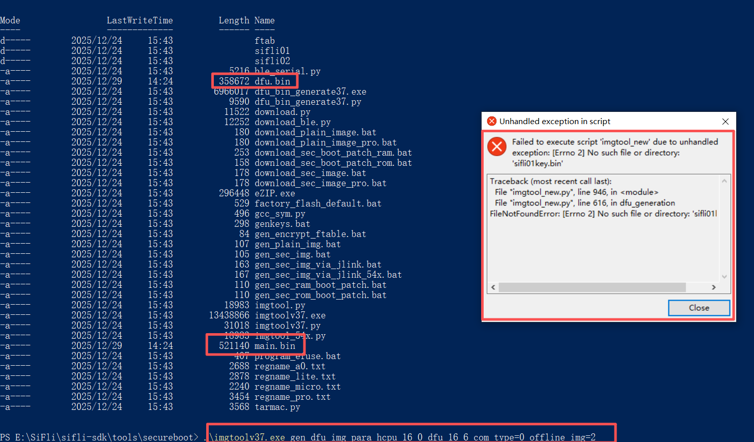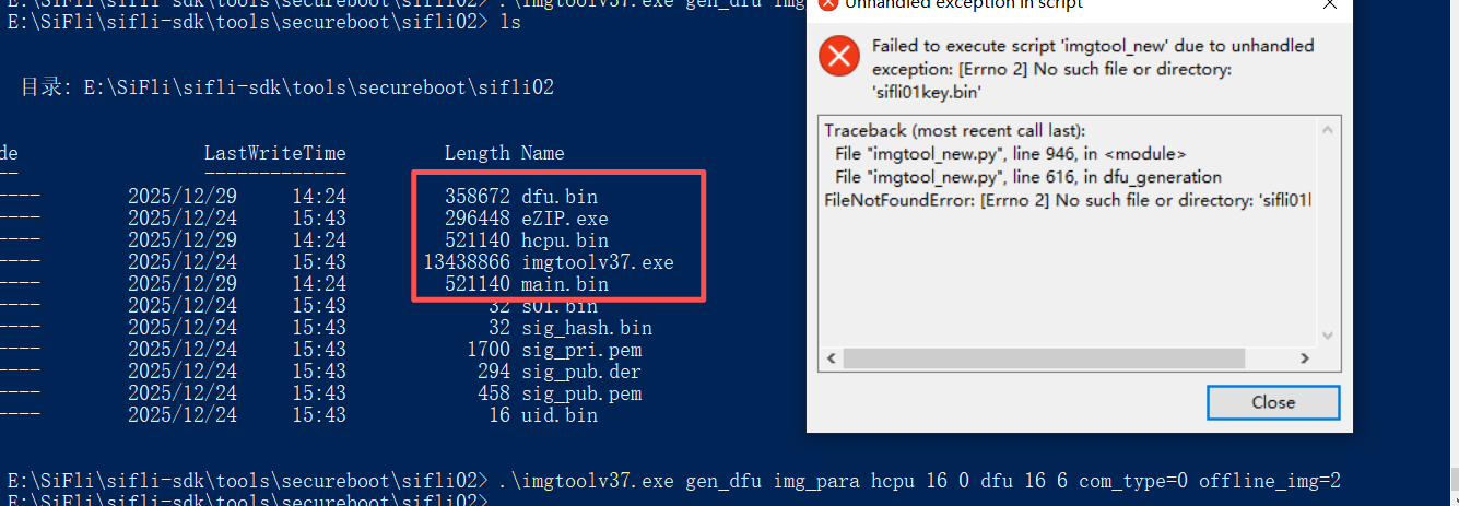 我按OTA升级包制作 - 疑难解答 - SiFli BBS这流程进行。复制了main.bin,dfu.bin在tools/secureboot 也会报错。