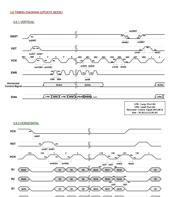 According to the Sharp JDI manual I have and by cross-referencing this timing diagram, GEN should correspond to ENB, and INTB should correspond to XRST.
