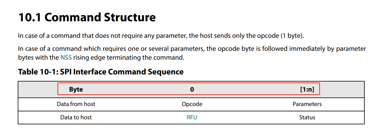 The operation code and parameters should be sent continuously in one transmission. During a complete transmission, NSS should remain low throughout and does not need additional configuration. For example: